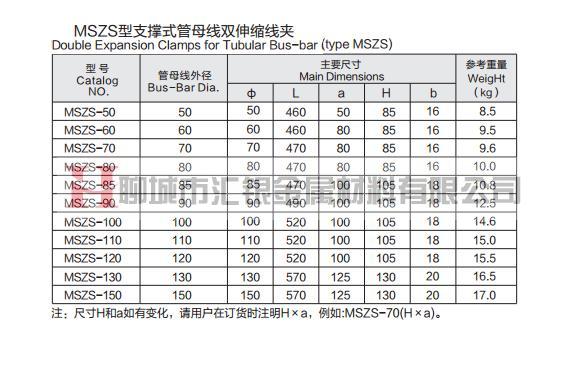 • MSZS型支撐式管母線雙伸縮線夾